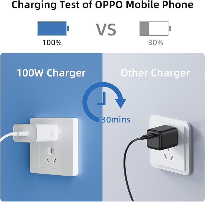 100W Chargeur pour OPPO SUPERVOOC Charge Rapide Adaptateur Chargeur USB 8A Type C Câble USB C 1 Mètre