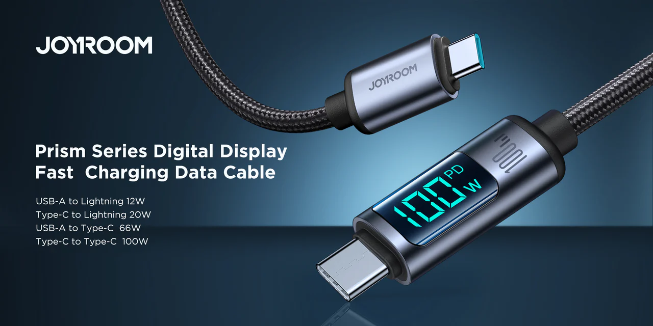 JOYROOM S-AC066A16 Prism Series 66W USB-A vers Affichage numérique Type-C Câble de données de charge rapide 1,2 m
