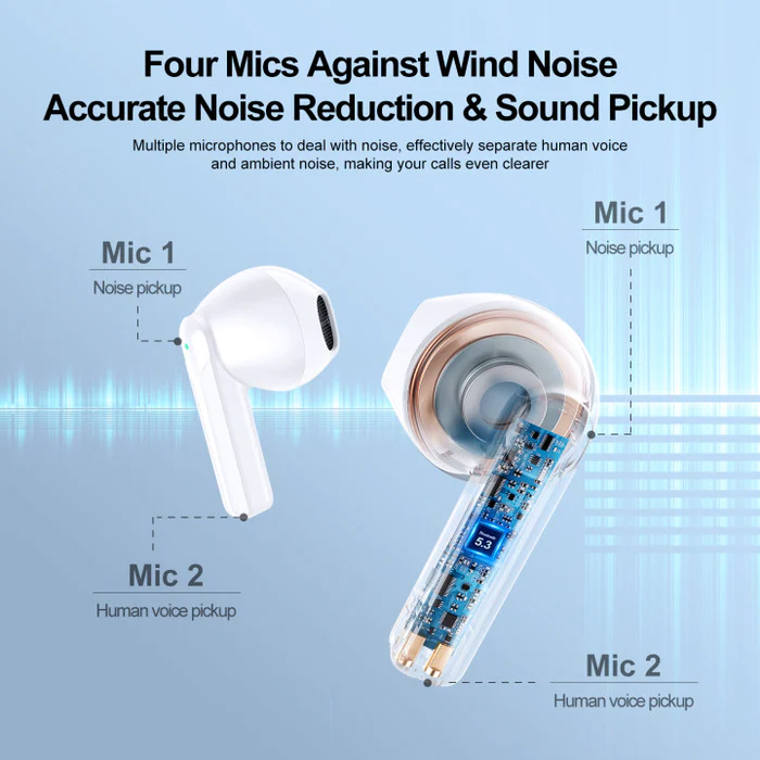 Écouteurs sans fil JR-TL11 ENC à double micro sont conçus pour offrir une expérience audio immersive, combinant des fonctionnalités avancées et une conception ergonomique. Avec un réseau bidirectionnel de 4 micros et la technologie ENC (réduction du bruit des appels à double micro), ces écouteurs garantissent une prise d’appel précise et une suppression profonde du bruit ambiant.